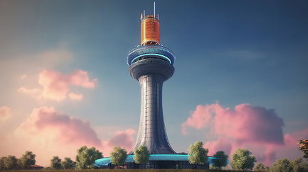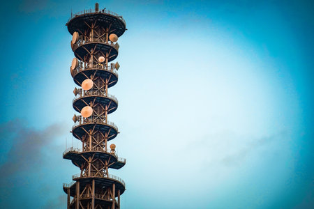 A Telecommunication Tower stands against a clear blue sky, revealing modern technology