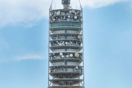 Barcelona, Spain - June 21, 2017: View of the Collserola telecommunications tower on the heights of Barcelona on a summer day
