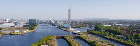 Landmark observation tower at Pacific Quay in Glasgow, Scotland