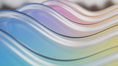 Smooth, flowing waves of pastel rainbow colors with soft light reflections and subtle gradients create an ethereal,...