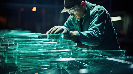 Process of glass production in manufacturing industrial, handmade glass product, industry concept
