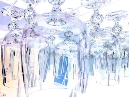 Row of glasses macro shot. Empty glasses on a banquet table close up