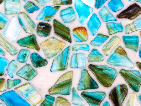 Wall texture with green and blue mosaic stones in Alajuela Costa Rica in Central America.