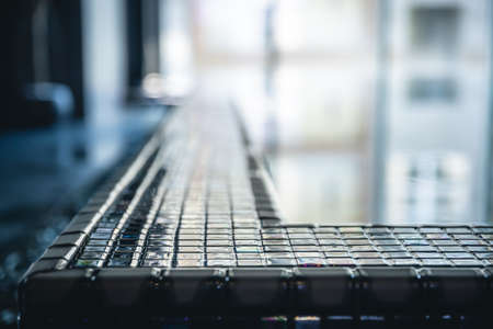 Silver square blacks reflect the space around the high resolution pattern. View from above. Copy space.