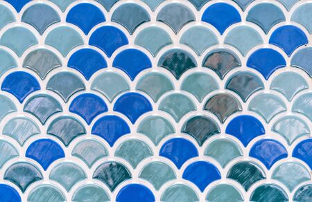 Colored mosaic tiles in the form of scales. Tile texture with a marine design.
