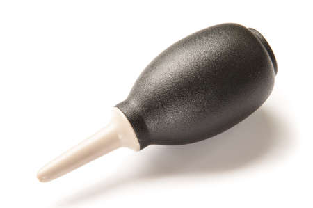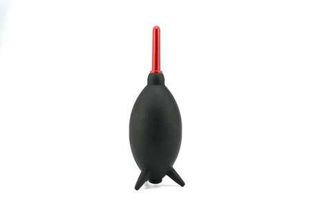 Close up of rubber blower for cleaning electronic equipment isolated on white background.