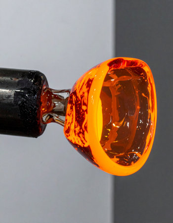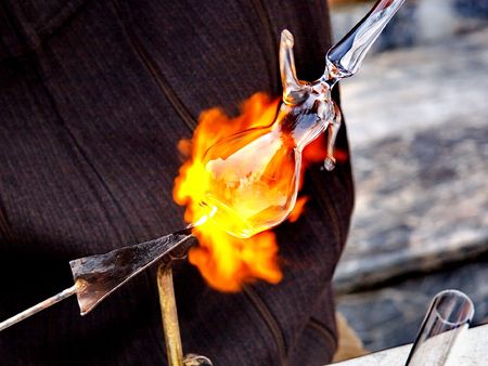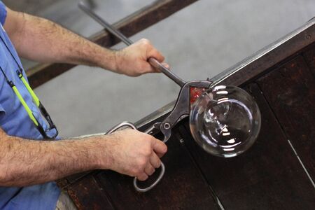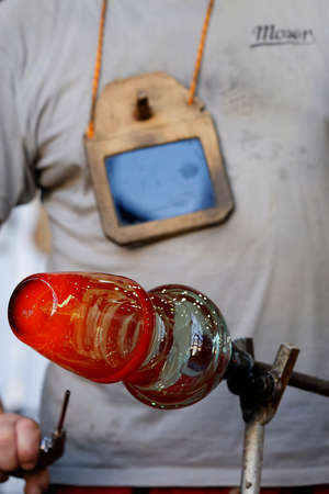 Detail of a glass craftsman, shaping glass with fire
