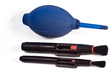 Close up of lens cleaner equipment on isolated white