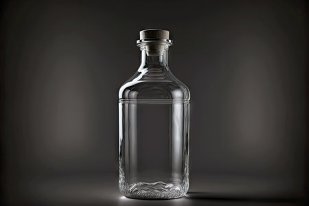 glass bottle on a black background casts the shadow of the game of the sun's rays