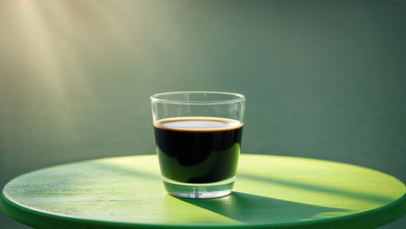 AI Generated. Refreshing Black Drink in a Glass Cup on Green Table