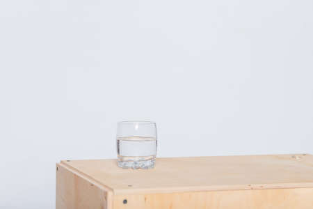 Tall glass full of lightly carbonated drinking water standing on a wooden table