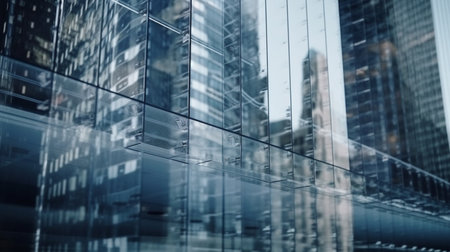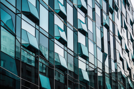 abstract and geometric design of a modern building facade with glass windows, created with generative ai