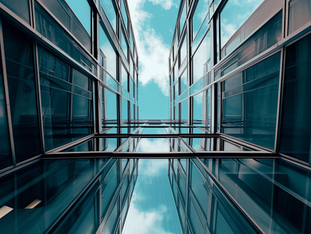 Sky reflected in a modern building glass facade