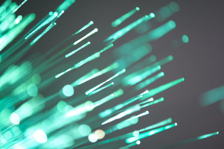 Abstract depiction of colorful fiber optic strands conveying speed and technology in a modern digital landscape, enhancing the visual appeal and innovation concept