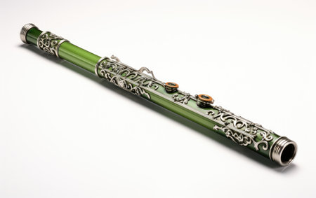 Beautiful Green Irish Tin Whistle Isolated on White Background.