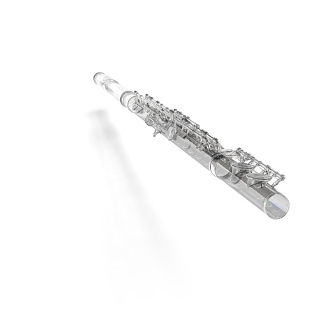 Silver flute covered in frost and delicate icicles with cold mist and high contrast monochrome tones emphasizing metal texture and frozen details. The composition includes ample clean empty space suitable for text or design placements