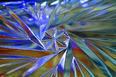 Macro abstract art background of beautiful lead crystal glass surface texture with criss cross and fan design cuts
