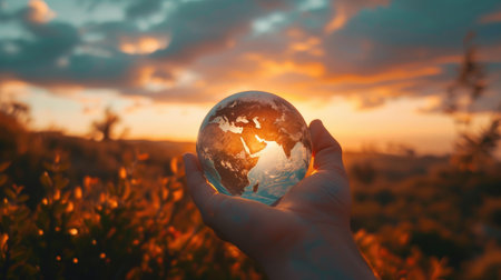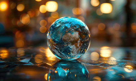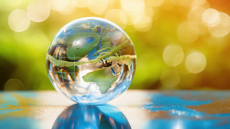 A stunning crystal globe captures the breathtaking view of Earth, showcasing vibrant land and water, symbolizing the delicate balance of our planet's environment.