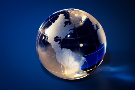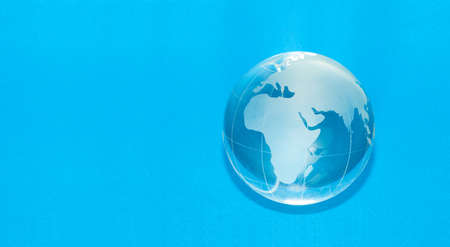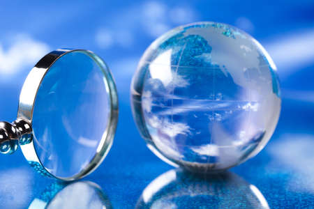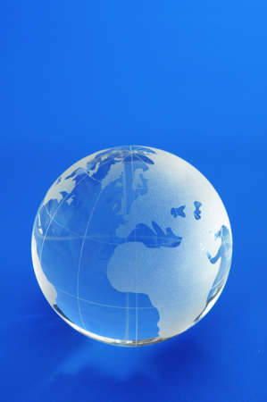 Glass globe on blue background