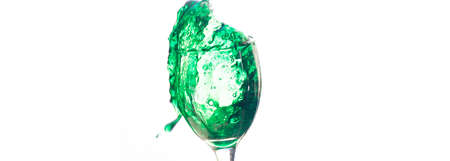 Colored liquid splash in a glass bowl. Effect in photography to show movement and give energy to the image. The photograph in question simulates a toast.