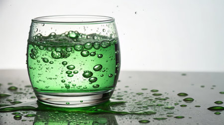 A clear glass filled with sparkling water showcases bubbles, set against a vibrant green backdrop. Perfect imagery for health, freshness, or hydration themes.