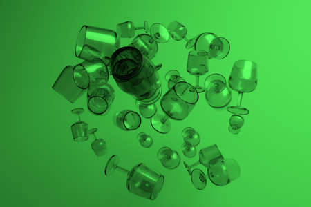 3D Render Broken Glass Realistic green beer bottle Mock Up, 3D illustration Graphic Design.