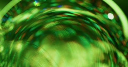 Blurred stroboscope. Strobe rotation. Rays pass through round faceted lens. Bright green twinkle. Refracting effect background. Colorful festive shimmer.
