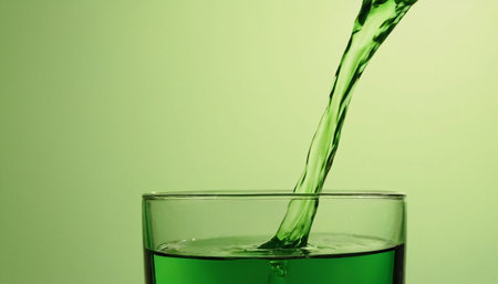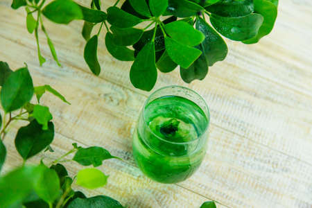 chlorophyll supplement in a glass of water. selective focus. Nature.