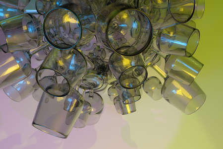 Transparent glasses floating around on white background. Black & white B&W 3D rendering.