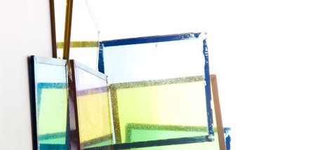 A stunning close-up of colorful glass fragments displaying vibrant hues and unique textures. The dynamic arrangement creates an engaging abstract pattern.