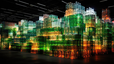 Colorful geometric light art installation in modern gallery space. That the image is generated using AI.