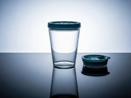 Recycling glass jar lids for reuse of single use items; Zero no waste recycle program campaigns; Recyclable concept on blank empty copyspace, text room space for copy on horizontal cyan background.