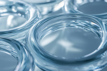 Abstract close up of circular glass shapes showcasing clarity and reflections, ideal for modern design concepts, transparency, and minimalism