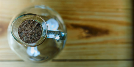 Closeup overhead view of empty fresh kefir probiotik drink on kitchen table