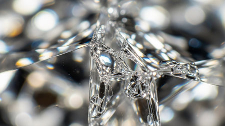 Macro abstract art background of beautiful diamond cut lead crystal glass surface texture, reflecting bright natural light