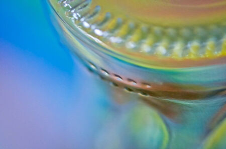 The macro picture of glass in vivid color light.