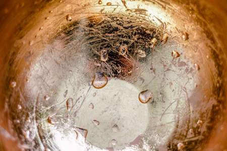 Macro texture of empty glass of Cortado - Spanish coffee with milk,