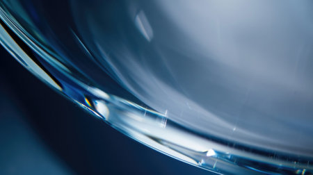A white, curved glass with a holographic gradient color effect. Close-up of the curved glass on the right side, with a light blue background and a blurred background. The style is minimalist, with a futuristic feeling. The image has high resolution, studio lighting, soft focus, and no shadows, characteristic of product photography. The glass has a delicate texture, high saturation, and high brightness, with white and purple colors and fluid shapes, creating a hologram effect. --ar 2:1 --v 6.1 Job ID: 733db66b-7ee9-48fe-86d2-9de0125dad9e