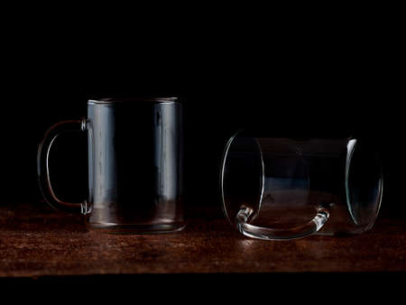 Empty glass on dark background. Transparent glass with reflections.