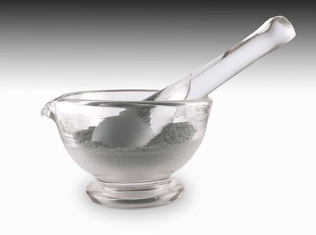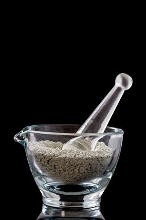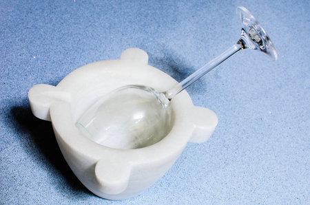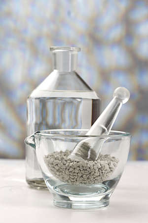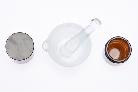 Vintage ceramic and glass mortar. Chemical laboratory