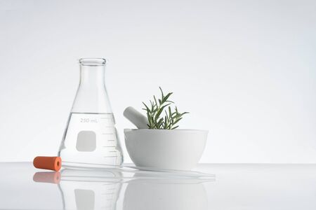 herbal medicine natural organic and scientific glassware, Research and development concept.