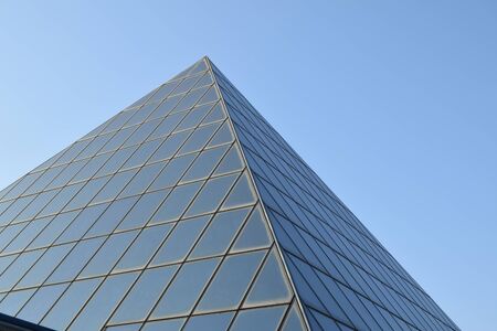 SAPPORO, JAPAN - FEBRUARY 2015: The symbol of Moerenuma park, the glass pyramid Hidamari, on February 5 in Sapporo. The glass pyramid is multi-purpose space, serves as cultural activities, museum and shop.