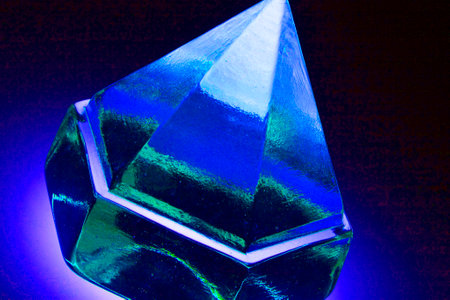 Blurry image of a glass pyramid. Abstract still life image of a geometric object.