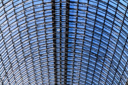 Curved ceiling of dome with geometric frame structure in black steel. modern and contemporary architecture style as abstract architectural and industrial background or pattern.