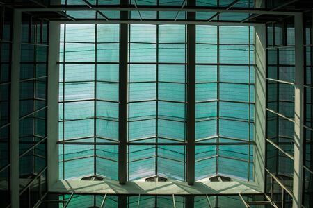 Skylight glass roof of an atrium, with geometric structure in modern contemporary architectural style