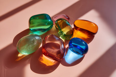 Radiant Reflections: A Mesmerizing Close-Up of Vibrant Plastic Gemstones