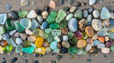 Vibrant Gemstones on a Beach: Polished Textured Sea Glass
