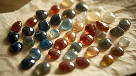 Vibrant collection of assorted polished stones and sea glass in various colors textures