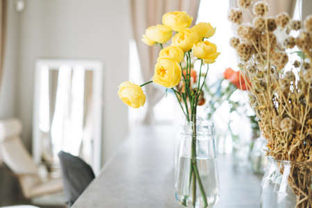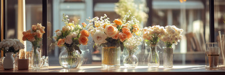 elegant floral decor, fresh flowers in crystal vases elevate the modern home decor, infusing a vibrant and stylish ambiance into the living space