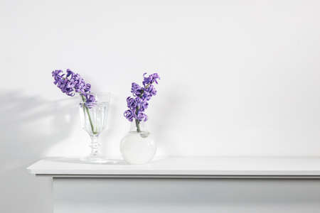 Fashionable stock background - flowers in a vase on a white background. Women's wedding or greeting background with copy space.